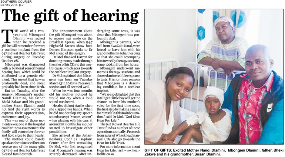 Duane has been on several talks shows and in the media several times over the years The gift of hearing Health Talk Tegan First hearing birthday Dagbreek : Medies : Dr. Duane Mol Ashleigh Simon - The birdie Queen Strange Virus that ended my Career Ear Surgery Offers Fresh Start